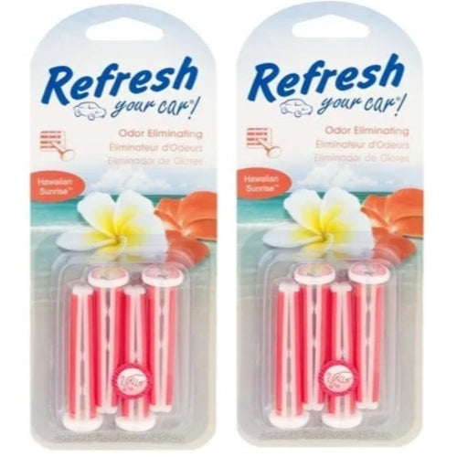 Transform your daily commute into a Hawaiian getaway with Refresh Your Car! Hawaiian Sunrise Vent Stick Air Freshener. This 2-pack brings waves of coconut and tropical fruits to your vehicle, creating a dreamy vacation vibe. Perfect for conscious millennials who want to combine comfort and style: