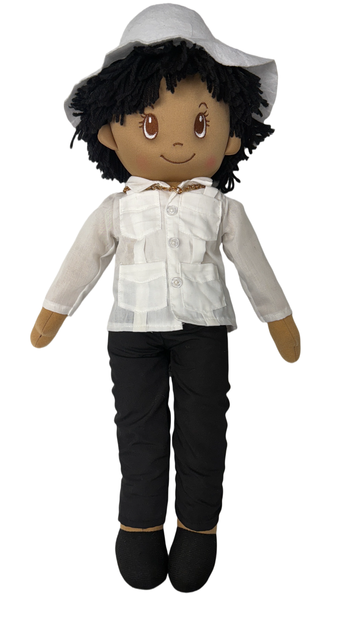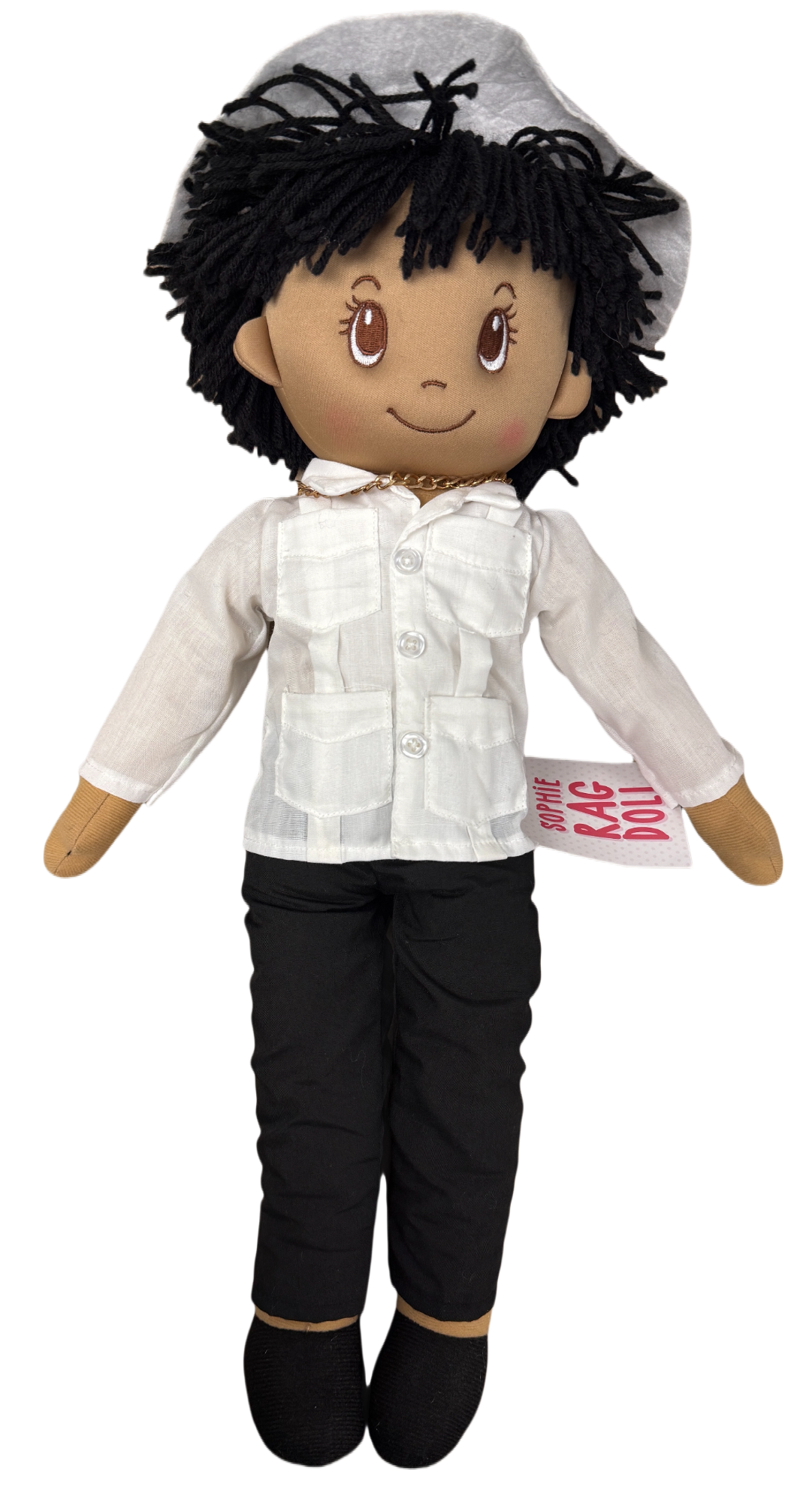 22" Sophie Decorative Boy Rag Doll - Black Pants White Shirt, Hat and Necklace