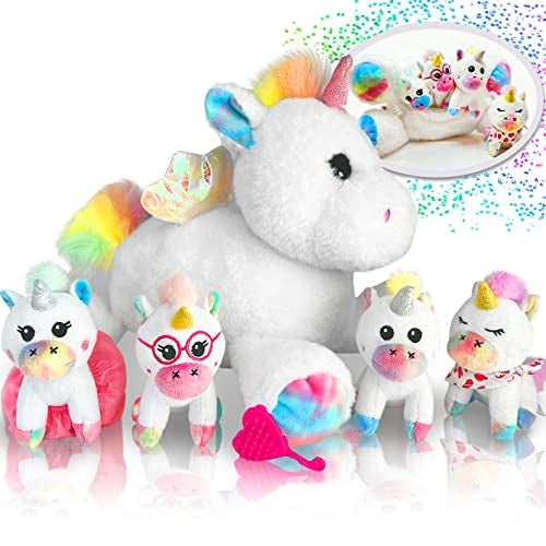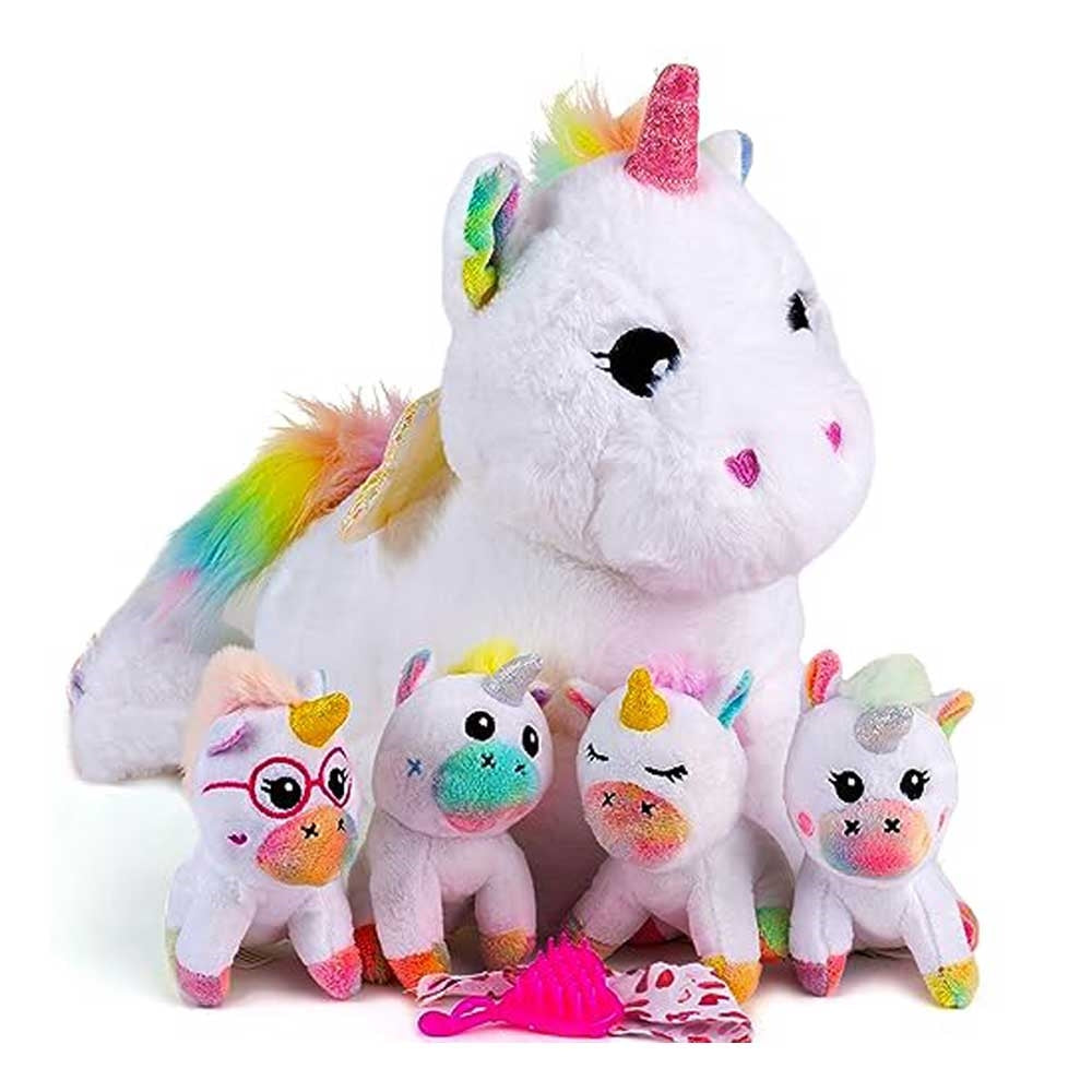 Looking for the perfect combination of comfort, style, and sustainability? Our 5 in 1 Unicorn Mommy Stuffed Animal is an enchanting gift designed for your little ones aged 3 and up. This delightful set features a soft, cuddly unicorn mommy that comes with 4 adorable baby unicorns nestled in her tummy, making it the ideal companion for imaginative playtime.