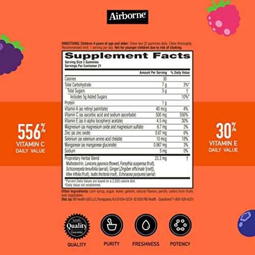 Looking for a tasty and effective way to support your child's immune system? Look no further than Airborne Vitamin C Gummies for Kids! 😋 These assorted fruit-flavored chewables deliver 500mg of Vitamin C per serving, plus Vitamins A & E, Selenium, and a herbal blend of Echinacea & Ginger.