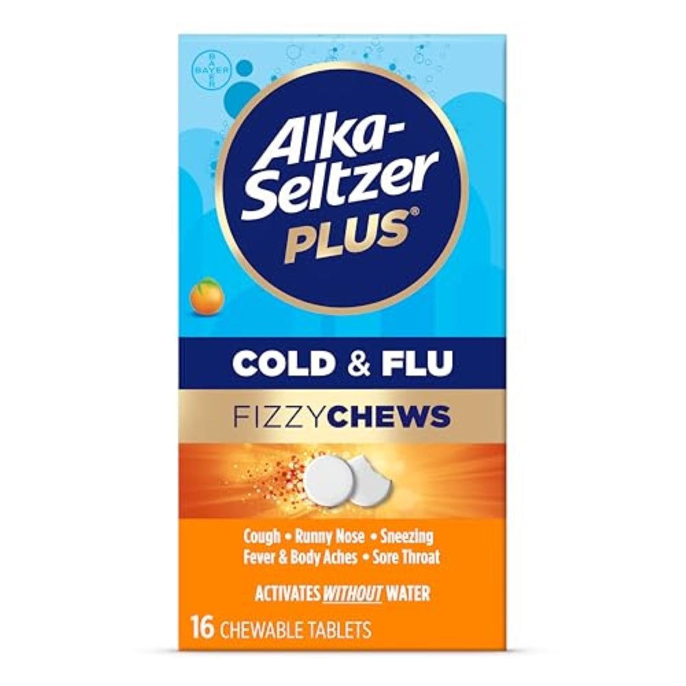 Trust the relief you know from Alka-seltzer Plus! These Alka-seltzer Plus Cold & Flu FizzyChews deliver powerful multi-symptom relief specifically formulated for adults. They target common cold and flu symptoms, helping you feel better faster. Enjoy the pleasant Orange Flavor while getting the effective relief you need. Whether you're a loyal Alka-Seltzer user or looking for a convenient alternative to traditional cold medicine, these 16 Count FizzyChews provide a great value for tackling cold and flu season head-on. Get back to feeling your best with reliable relief. 💪