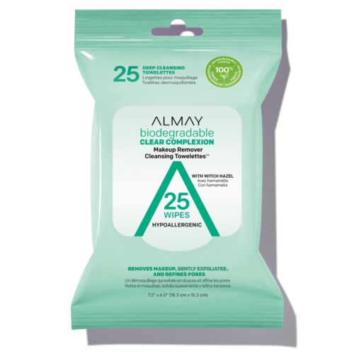 Say goodbye to stubborn makeup and hello to clearer skin with Almay Biodegradable Clear Complexion Makeup Remover Cleansing Towelettes. This 2 pack gives you 50 wipes total, perfect for busy routines! These deep-cleansing towelettes effortlessly sweep away face and eye makeup, dirt, and oil in one simple step. Ideal for oily and acne-prone skin, they help purify pores and leave your complexion feeling fresh and clean. Get quick, convenient makeup removal wipes that work wonders! Grab this value pack today and simplify your skincare routine.