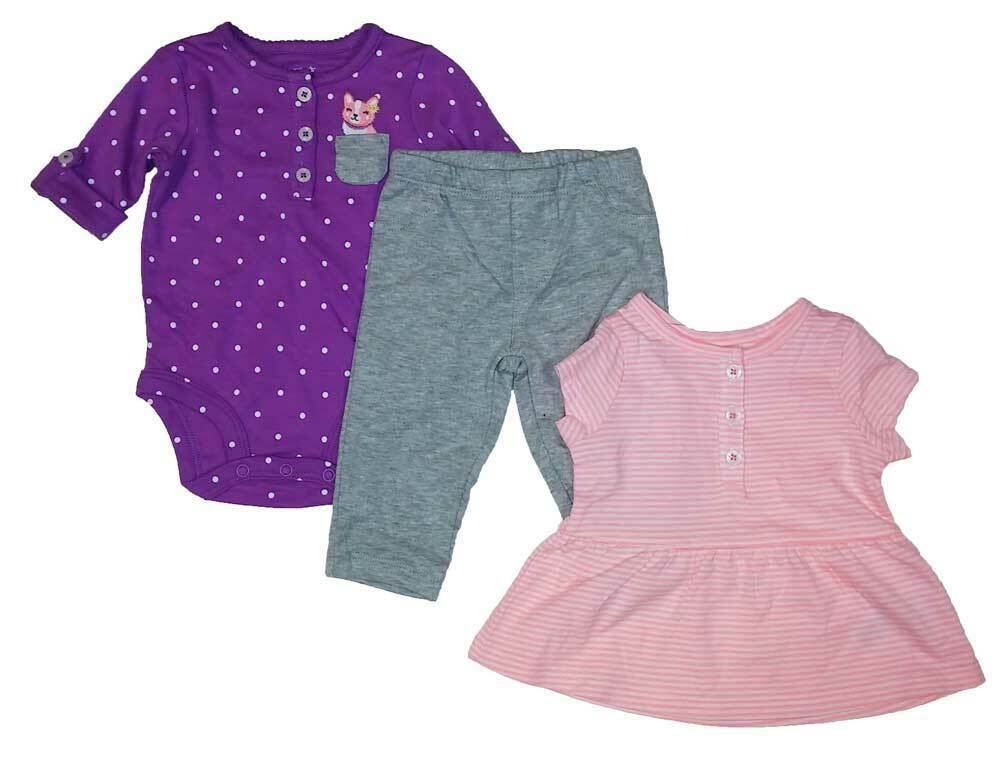 Introducing the Carter's Baby Girls Bodysuit Pants 3PC Set, designed with conscious and sustainable buyers in mind! This adorable set combines style and comfort, making it perfect for your little fashionista.