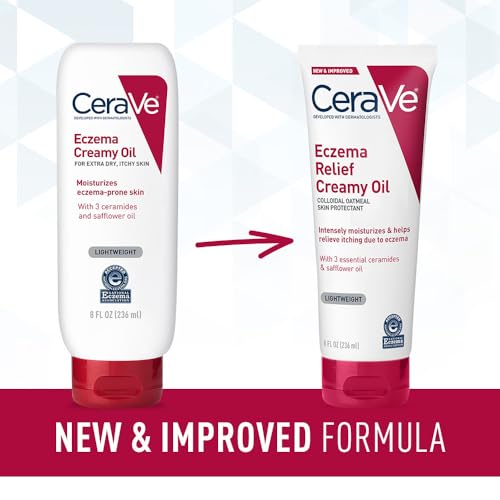 Find fast, comforting relief for dry, itchy, and eczema-prone skin with CeraVe Eczema Relief Creamy Body Oil. This unique creamy oil blend is formulated with soothing Colloidal Oatmeal and nourishing Safflower Oil. It works quickly to calm irritated skin and provide lasting moisture without a greasy feel. Say goodbye to discomfort and hello to visibly healthier-looking skin! Perfect for anyone seeking effective skin relief.