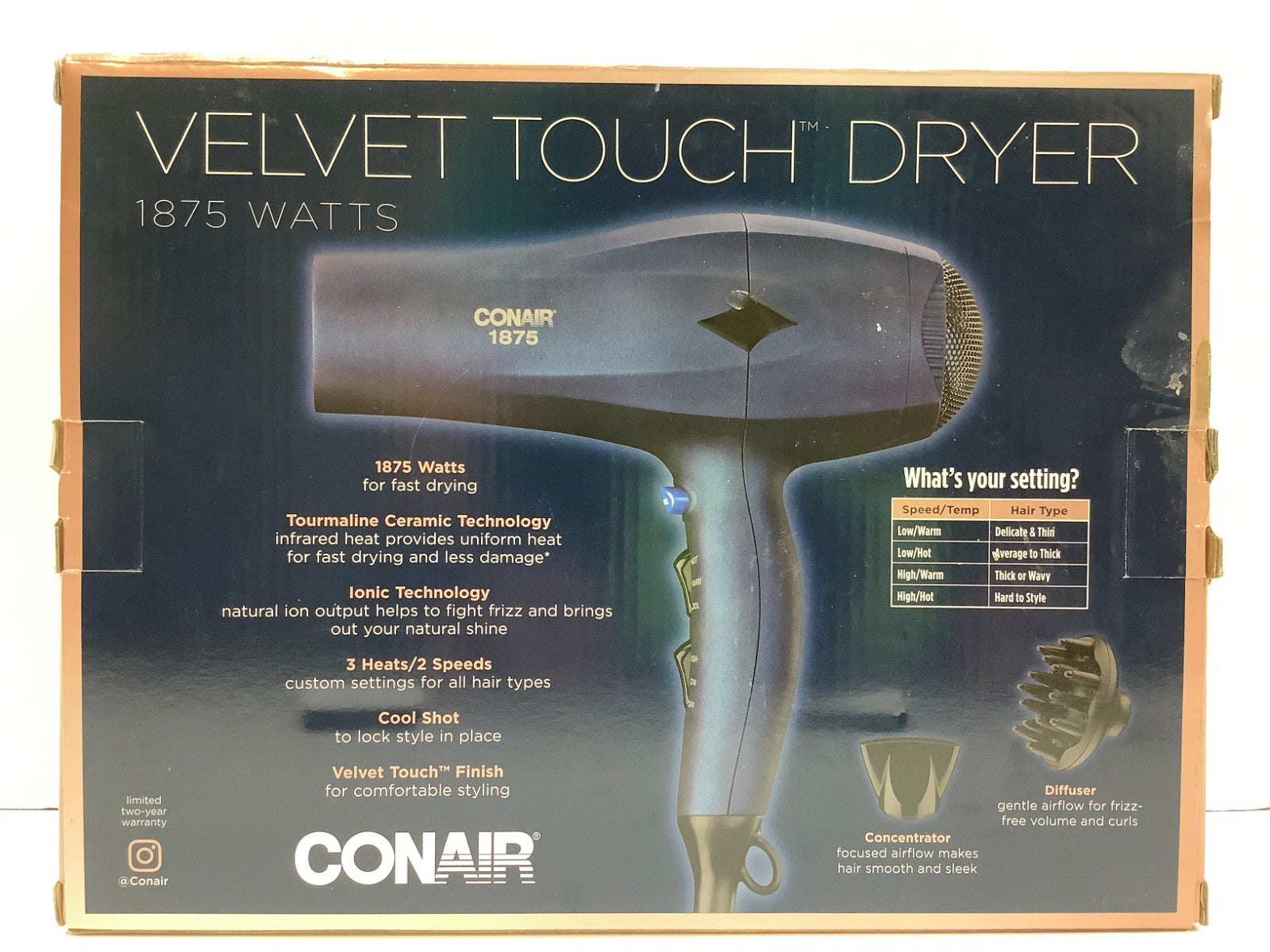 Experience ultimate comfort with the unique "Velvet Touch" finish of this Conair hair dryer. Designed for an ergonomic, comfortable grip, it makes daily styling a breeze. Ideal for anyone seeking affordable beauty tools and a great deal on a high-quality product. This brand new Conair dryer is a smart investment for your daily routine or a thoughtful gift. Plus, enjoy Free Shipping on this essential beauty gadget! Don't miss out on this fantastic offer for a stylish and functional hair dryer. 🎁