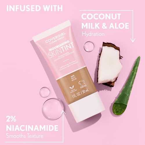 Discover the secret to an all-day healthy glow with COVERGIRL Clean Fresh Skin Milk Foundation, now available in the stunning Rich/Deep shade. This lightweight foundation offers beautiful light coverage for all skin types, perfect for achieving that natural, dewy finish you crave. Infused with hydrating coconut milk and soothing Aloe extract, it's packed with good-for-you ingredients that nourish your skin while you wear it. Get that youthful, fresh look effortlessly and simplify your beauty routine!