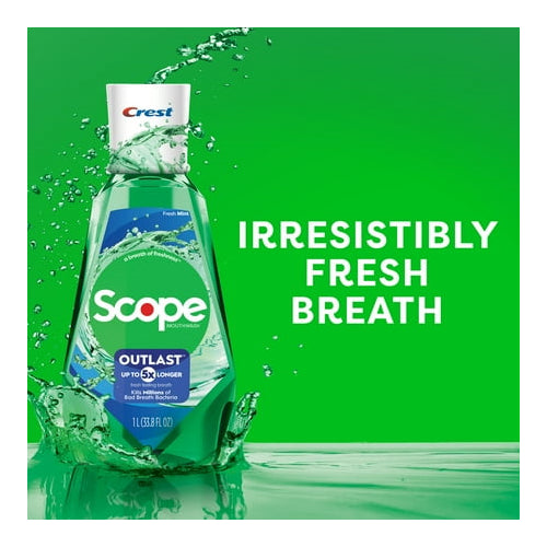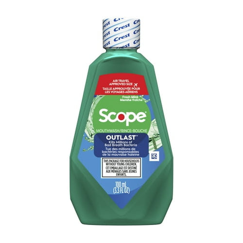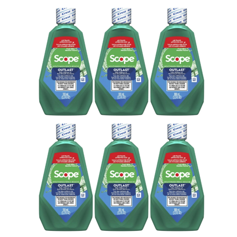 Tired of bad breath ruining your day? Get ready for a cool blast of confidence with the Crest Scope Outlast Mouthwash, Fresh Mint! This convenient 6-pack of 100mL bottles ensures you're always prepared to fight bad breath on the go. Each bottle delivers that signature Scope minty tingle, leaving your mouth feeling clean and refreshed. This fresh mint mouthwash doesn't just mask bad breath; it helps eliminate it! Perfect for busy professionals, parents, and anyone who wants a quick and effective way to maintain fresh breath. Stock up now and experience the long-lasting freshness of Crest Scope Outlast. Don't miss out on this amazing deal!