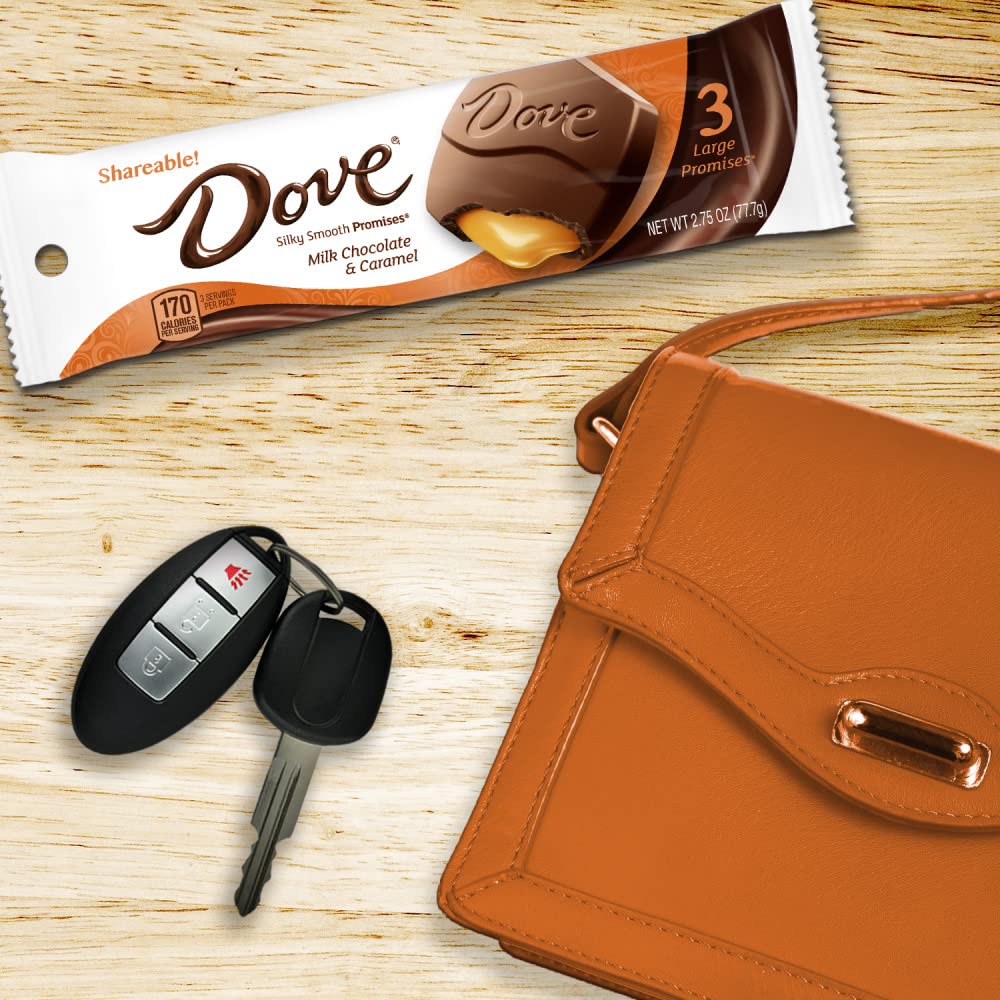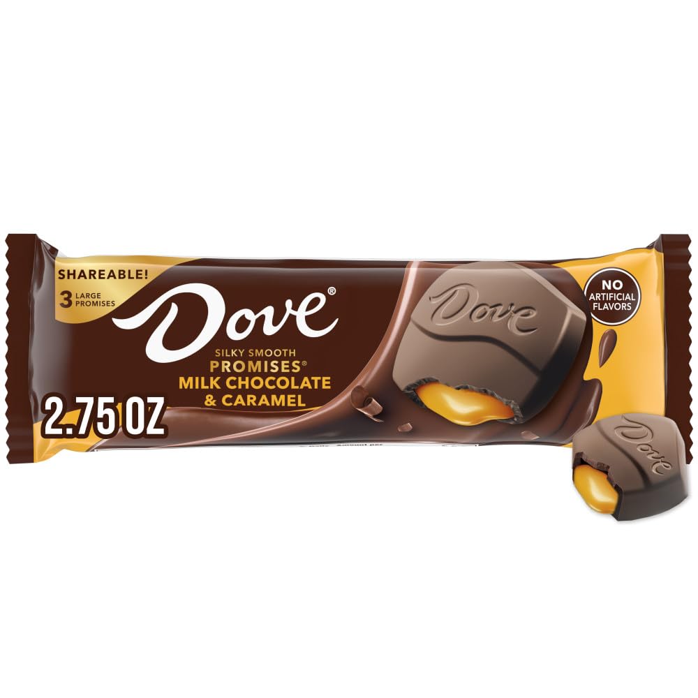 Experience the unparalleled delight of DOVE Large PROMISES Milk Chocolate Caramel Candy. Each 2.75 oz pack contains three individual, larger-sized DOVE PROMISES, crafted for pure bliss. Immerse yourself in the rich, velvety taste of creamy milk chocolate embracing a luscious, irresistible caramel filling. This isn't just candy; it's a moment of pure indulgence designed to help you unwind and savor your favorite Milk Chocolate Caramel flavor. Treat yourself or elevate any sweet craving with this decadent classic! 🍫✨