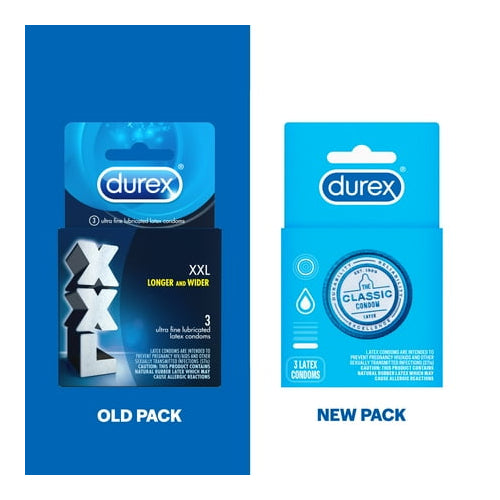 Durex Classic Condom XXL Longer & Wider Natural Latex Condoms, 3 Count EXJUL26