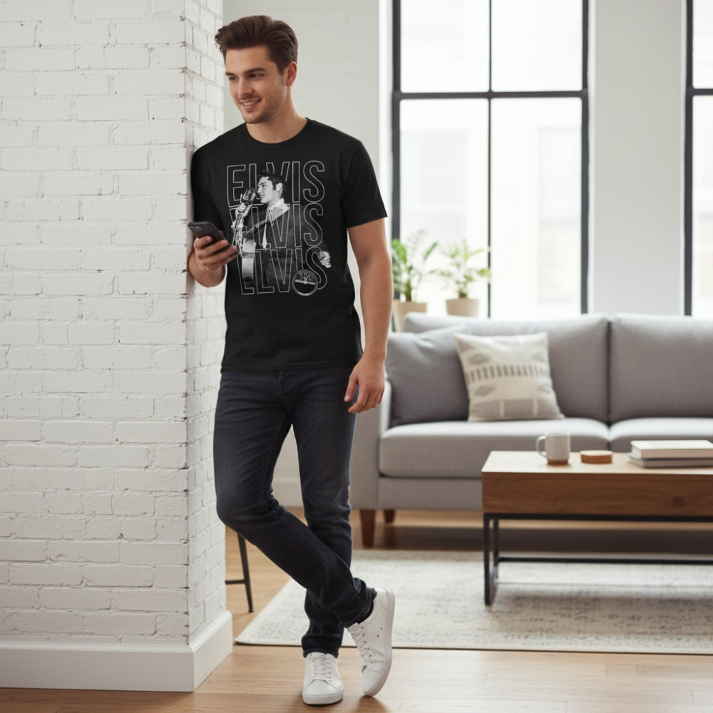 Pay tribute to the legendary King of Rock and Roll with this high-quality Elvis Presley graphic t-shirt. Designed for fans who appreciate timeless style, this shirt offers a comfortable fit and a classic look that is perfect for concerts, casual outings, or everyday wear.