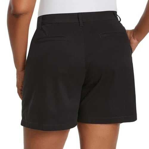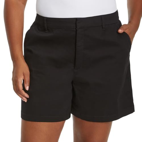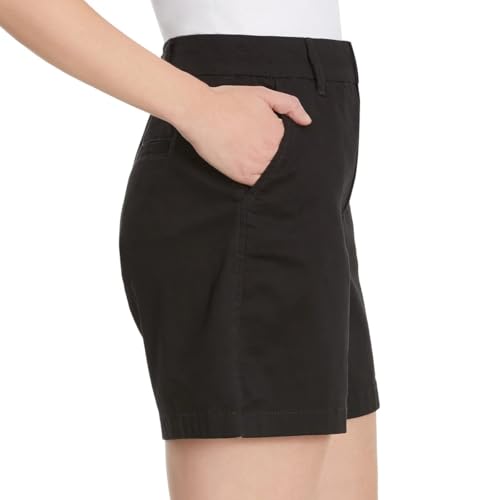 These black chino shorts are more than just stylish; they're built for convenience and durability. Featuring practical belt loops and a secure zipper with button closure, they provide a reliable fit. You'll appreciate the thoughtful pocket design: two convenient slant pockets in the front for easy access to essentials, and two smart welt pockets in the back, adding a touch of sophistication. With a versatile 5-inch inseam, these Gloria Vanderbilt shorts strike the perfect balance between coverage and freedom of movement. For online shoppers valuing quality, functionality, and great value, these high rise cotton shorts are an essential, smart purchase. Don't miss out on this staple for your collection! 🌟