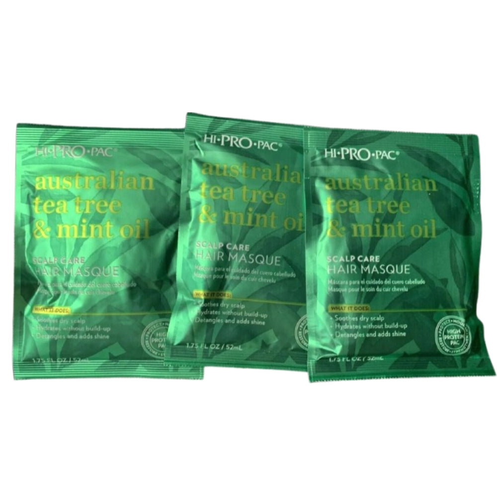 Discover the ultimate solution for dry hair and a thirsty scalp with the Hi-Pro-Pac Tea Tree & Mint hair mask! ✨ This convenient 3-pack of 1.75-ounce treatments is your secret weapon for powerful hydration and refreshing relief. Perfect for busy individuals, our deep conditioning formula works its magic in just 2-5 minutes, offering salon-quality results without the wait. Say goodbye to dull, dry strands and hello to instant revitalization!