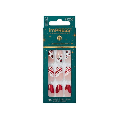 Transform your look in minutes with imPRESS Press-On Nails, the ultimate solution for salon-quality nails without the hassle. Perfect for busy shoppers, parents, and professionals, these Holiday fashion nails feature innovative PureFit Technology for a comfortable, secure Ultra Fit that looks and feels seamlessly natural. Say goodbye to waiting! There's no dry time needed, and application requires absolutely no glue needed, making them safe on natural nails. Enjoy chip proof and smudge proof wear throughout all your holiday events. ✨ Get stunning results fast and easy!