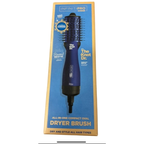 Tired of juggling a dryer and brush? Say goodbye to time-consuming routines and hello to effortless styling with the Infiniti Pro by Conair The Knot Dr All-in-One Compact Oval Hair Dryer Brush in stunning Sapphire. This 700-watt powerhouse is your ultimate multi-tasker, designed to detangle, dry, style, and volumize all hair types in one simple step. Perfect for busy individuals, parents, and anyone wanting quick, beautiful results. Its compact, lightweight design makes it a travel essential and easy to store, delivering that professional salon look whenever and wherever you need it. Get ready for quick, easy styling that fits your fast-paced life! ✨