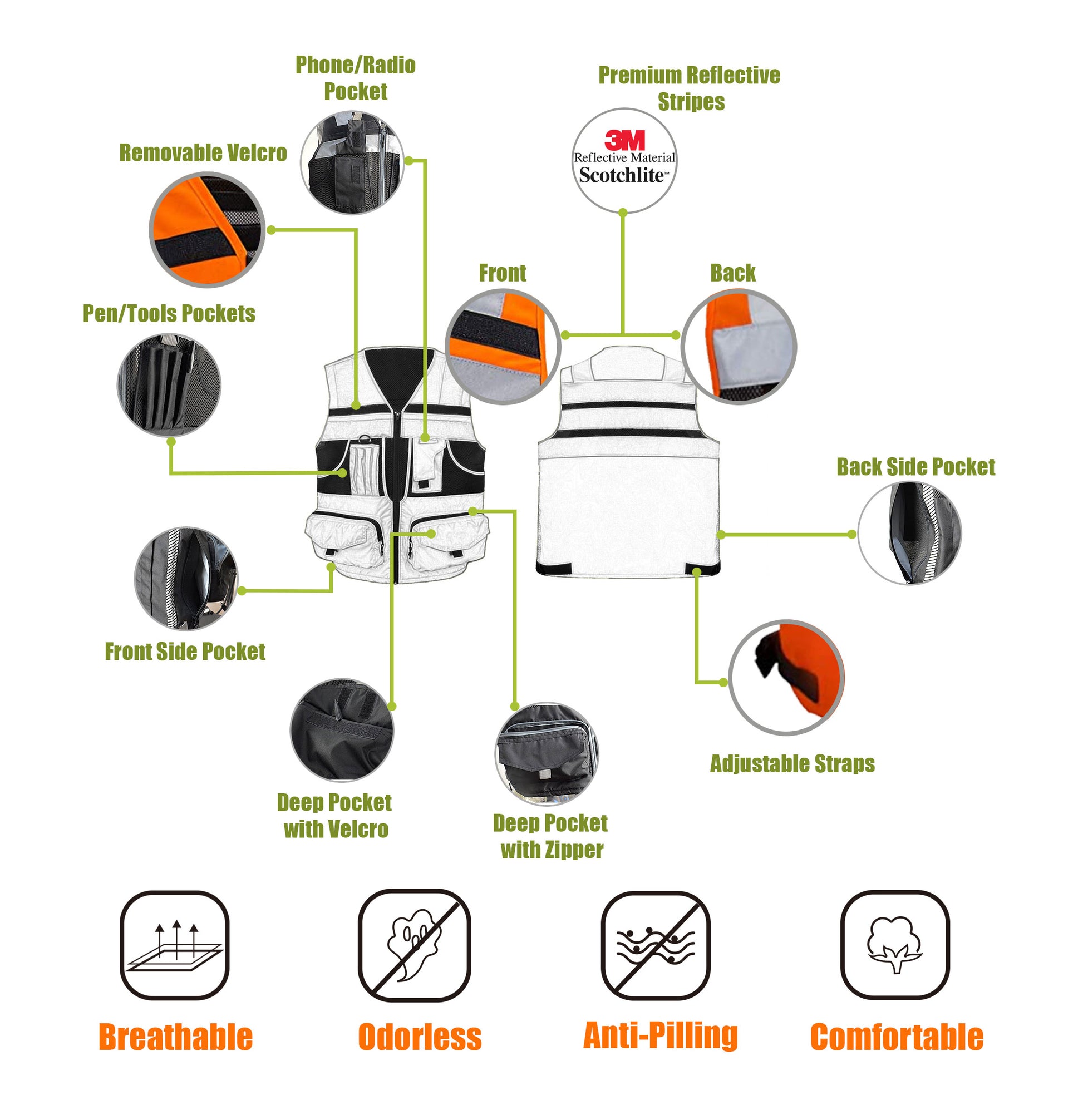 Featuring multiple pockets, it's as functional as it is fashionable, providing easy access to your tools and personal items. Whether you're on a construction site or walking your dog at dusk, feel confident knowing you’re seen and protected!
