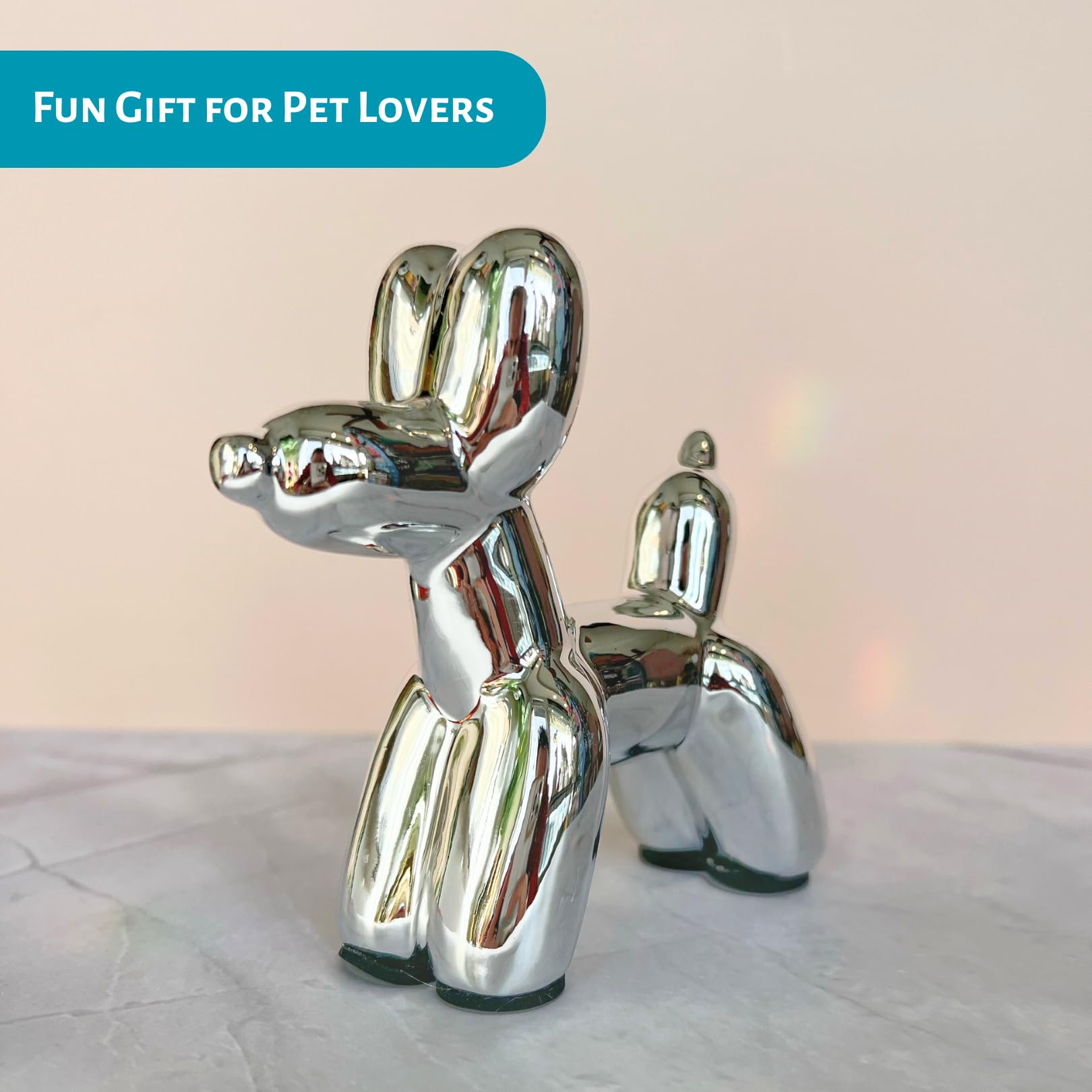 Transform your living area with this fun, small balloon dog figurine that embodies the preppy aesthetic. Young adults and millennials will love how this silver sculpture adds a playful yet sophisticated element to their decor. It's the perfect accent piece for those who want to express their personality through their home design. π π