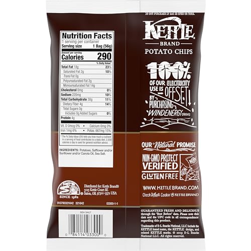 Indulge in the satisfying crunch of Kettle Brand Sea Salt Kettle Chips! Made with just three quality ingredients: premium potatoes, expertly cooked in oil, and perfectly seasoned with pure sea salt. These aren't just any chips; experience the distinctive, hearty crunch that only true kettle-cooked chips can deliver. We stand by our natural promise: these are Non-GMO Project Verified and certified gluten-free kettle chips. It's an authentic recipe, simplicity at its finest, crafted with high-quality ingredients for an incredible-tasting snack. Elevate your snack game with Kettle Brand – extra in a good way! ✨