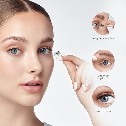 Transform your look instantly with KISS imPRESS Falsies Easy Tab Press On Self Adhesive Eyelashes in 'Classy Natural'. Designed for busy individuals and lash beginners alike, these revolutionary press-on lashes offer a seamless, no-glue application. Just press and go! Our unique under lash application delivers a truly natural volume and subtle enhancement (6mm-7mm inner clusters, 6mm-10mm outer half-lashes) that blends invisibly with your natural lashes. Say goodbye to messy glue and complex routines – hello to effortless beauty. ✨