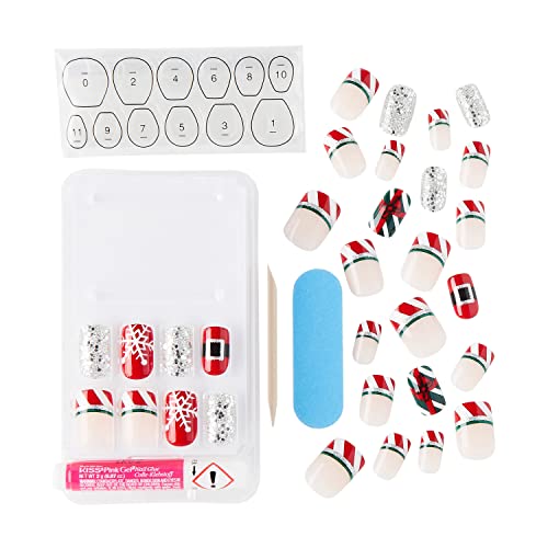 Transform your look in minutes with the KISS Special Design Limited Edition Holiday Fake Nails in the stunning 'Season's Must-Haves' style! These multi-colored, medium squoval press-on nails are your secret weapon for instant festive flair. Perfect for busy professionals and parents, application takes mere minutes – no salon appointments or lengthy dry times required. Enjoy vibrant, chip-free, and smudge-proof color that’s completely waterproof, ensuring your holiday manicure stays flawless through every celebration. Embrace the latest beauty trends effortlessly and be party-ready in a flash! 💅