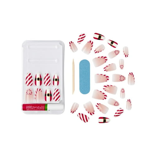 Transform your holiday look instantly with KISS Voguish Fantasy Press-On Nails in Jolly Jolly Red! These medium almond-shaped nails deliver salon-quality glamour without the salon price tag.
