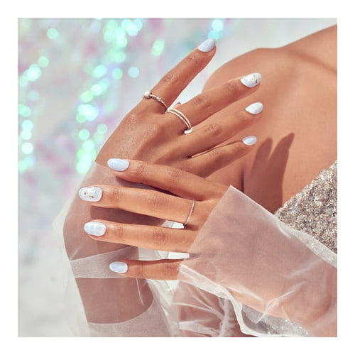 Transform your holiday look with KISS Voguish Fantasy Press-On Nails! These stunning blue short oval nails are the ultimate quick-fix for fabulous holiday style.