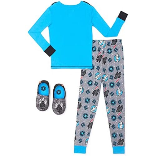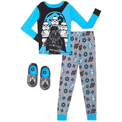 Let your little one's imagination soar with this LEGO Star Wars 3-piece pajama set! Perfect for LEGO and Star Wars fans, this set includes a cozy long-sleeve crew neck top and elastic waistband pants for ultimate comfort. But the fun doesn't stop there! It also comes with matching slippers featuring LEGO Darth Vader and Stormtroopers. Made from soft, lightweight material, these pajamas are ideal for sleepovers, lounging, or simply relaxing at home. This set is available in Big Boys and Little Boys sizes. Treat your child to the gift of comfort and adventure! 🎁