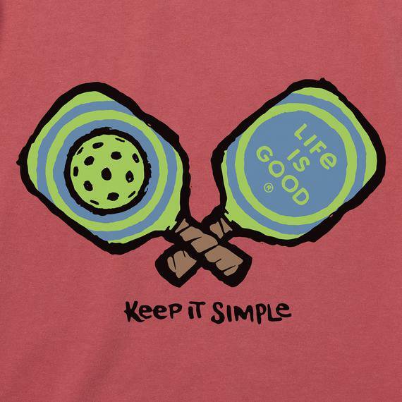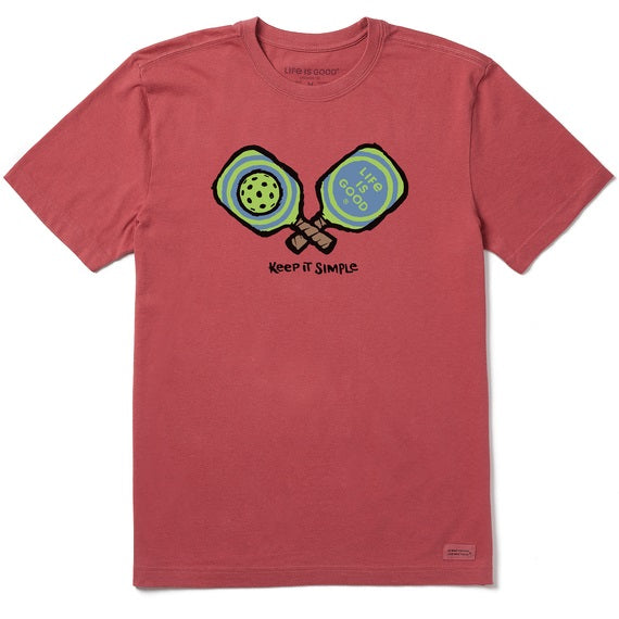 Calling all pickleball enthusiasts and casual sports lovers! The Life is Good Men's Keep It Simple Pickleball Crusher-LITE Tee is your ultimate game-day and everyday companion. Crafted from 100% USA-grown cotton, this medium-sized Faded Red tee delivers unparalleled comfort with a soft, pre-washed finish that feels like your favorite shirt from day one.