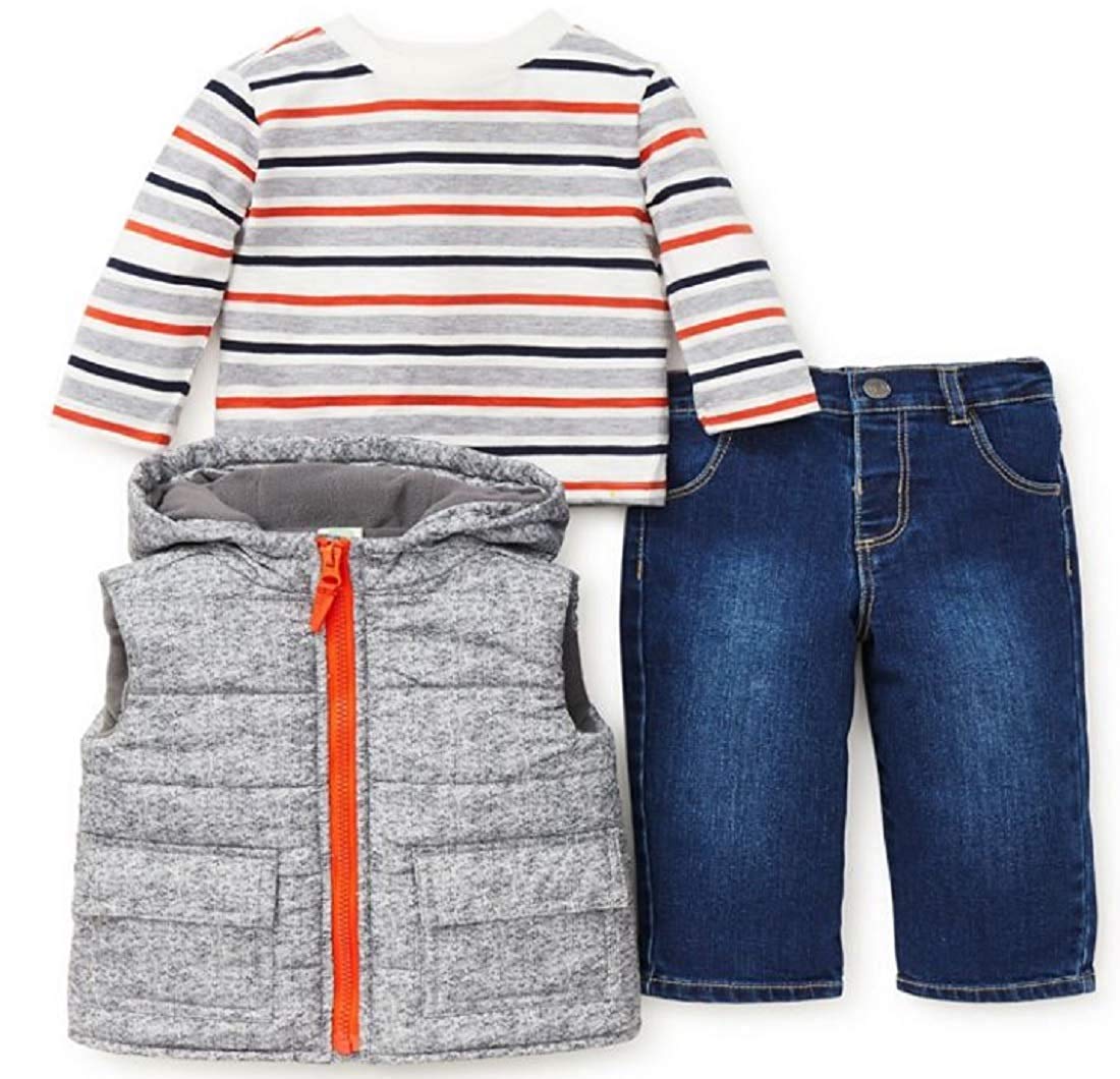 Discover the perfect blend of sustainability and style with the Little Me 3-Piece Puffer Vest, Shirt, and Pant Set. Made from eco-friendly materials, this set is designed for the conscious buyer who values comfort without compromising on a fashionable look. The stylish vest offers warm insulation, while the soft shirt and pants ensure breathability for all-day wear, whether at home or out on an adventure.