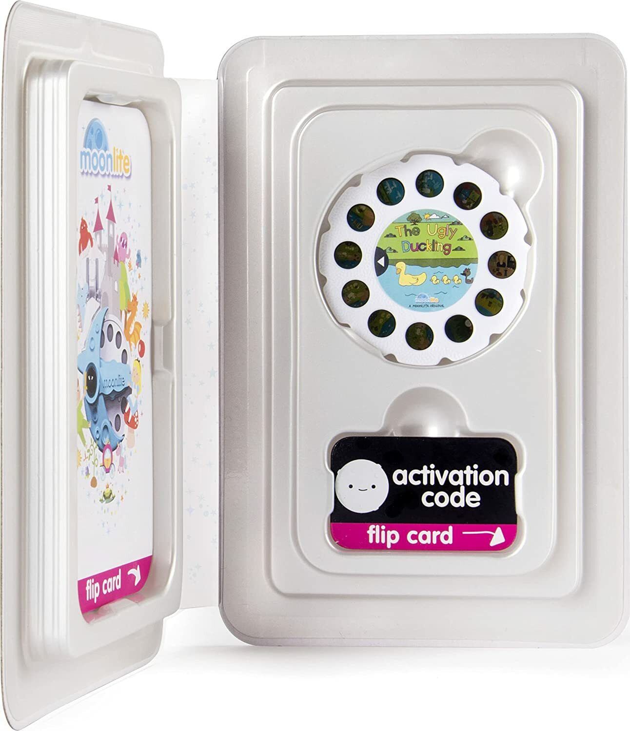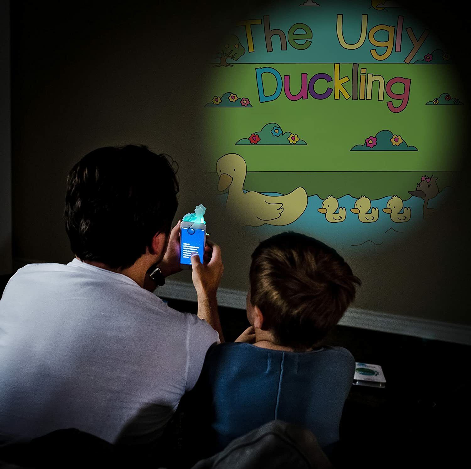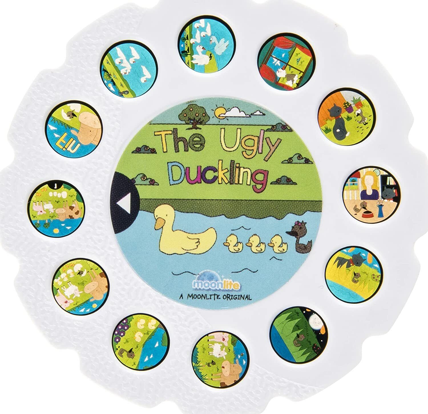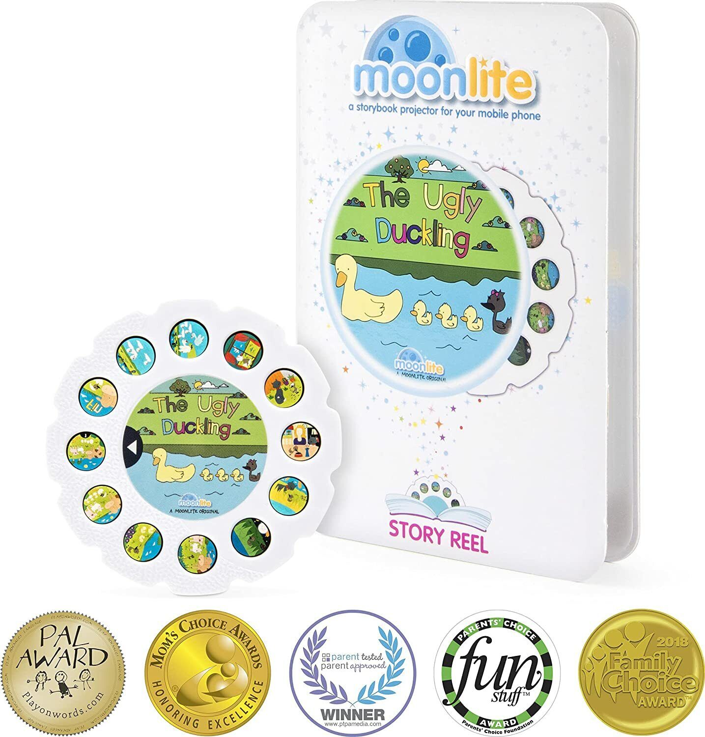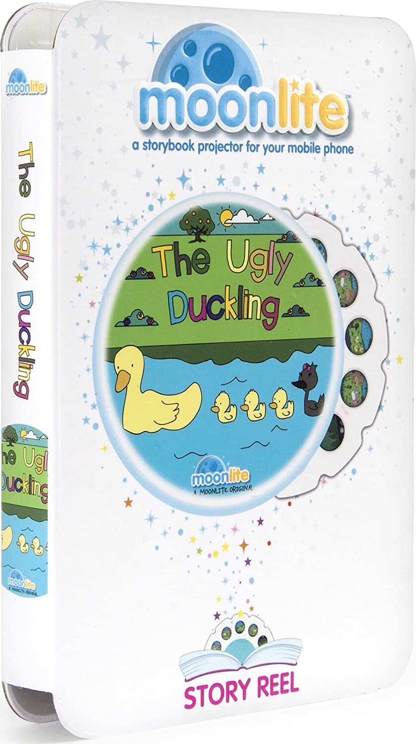 Unbox pure magic with the Moonlite Storytime The Ugly Duckling Storybook Reel! Transform any room into an enchanting story theatre, making reading together an unforgettable experience for your little ones. Simply slide this vibrant story reel into your Moonlite projector (sold separately), clip it to your smartphone, and watch stunning, animated illustrations come to life on any surface. With captivating in-app story text and fun sound effects, "The Ugly Duckling" becomes a truly immersive digital story adventure. It's an innovative way to introduce toddler early learning toys and create cherished memories for kids ages 12 months and up. Perfect for busy parents seeking engaging, easy bedtime stories! 📚👶