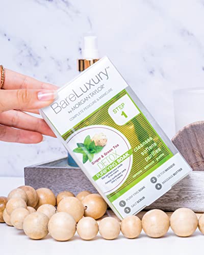 Morgan Taylor BareLuxury 4-Step Complete Pedicure & Manicure Packs - Complete Nail Care Kit with Soak, Masque, Scrub & Massage Butter, Professional Spa-Quality Treatments (Detox Ginger & Green Tea)