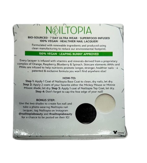 Elevate your nail game with the Nailtopia Mickey & Minnie Mouse Nail Polish Disney 100 Set! This brand-new, never-used set features classic black and white shades, perfect for creating timeless Disney-inspired looks. As a conscious buyer, you'll love that Nailtopia offers: