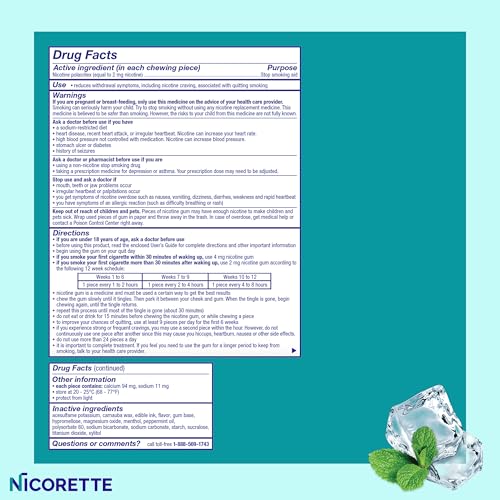 Ready to finally quit smoking? πͺ Nicorette 2mg Nicotine Gum in refreshing White Ice Mint flavor is a trusted stop smoking aid designed to help you manage cravings and withdrawal symptoms. This proven solution delivers therapeutic nicotine, giving you the support you need throughout your quitting journey. Don't let cravings derail your progress β keep this convenient gum handy and take charge of your health! Itβs a simple step towards a smoke-free life.