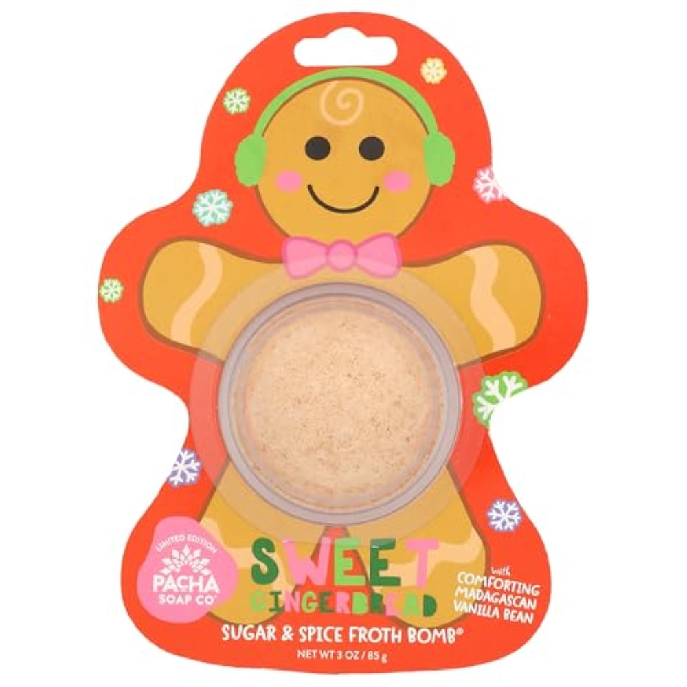 Experience the magic of a holiday-inspired bath experience that goes beyond ordinary self-care. The PACHA SOAP Gingerbread Man Froth Bomb delivers: