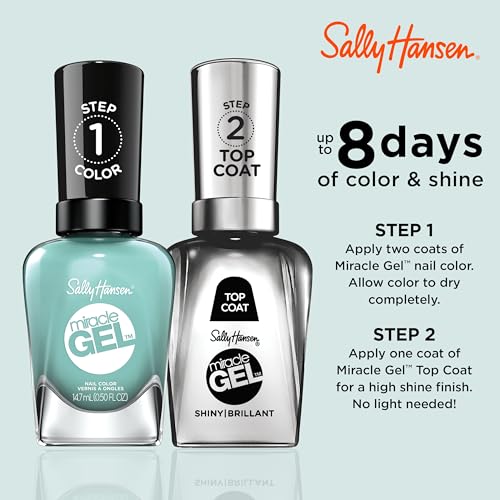 Transform your nails with Sally Hansen Miracle Gel in the stunning Mintage shade! Say goodbye to expensive salon visits and hello to a gel-like manicure right at home. This innovative formula delivers up to 8 days of vibrant color and brilliant shine, all without the need for a UV/LED lamp. 💅 It's the #1 no UV light system, designed for busy professionals and parents who crave a gorgeous, long-lasting manicure that’s also incredibly convenient. Experience the ultimate chip-resistant nail polish for professional-looking results that last. Pair with our Shiny Topcoat for maximum impact!