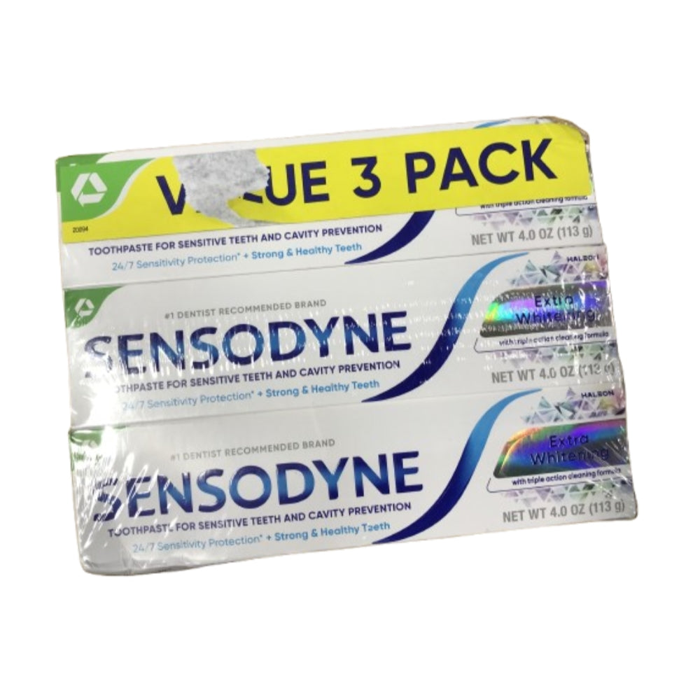 Stock up and save with this incredible Sensodyne Extra Whitening 3 Pack (4 Oz each)! Designed for the busy adult or smart shopper, this convenient bundle ensures you have a long-lasting supply of your daily dental essential. Beyond sensitivity relief and a whiter smile, this fluoride toothpaste provides robust anticavity protection, fresh breath benefits, and helps reduce tartar build-up for cleaner, smoother teeth. Make smart choices for your health and wallet. Get your multi-pack today and simplify your dental care routine!