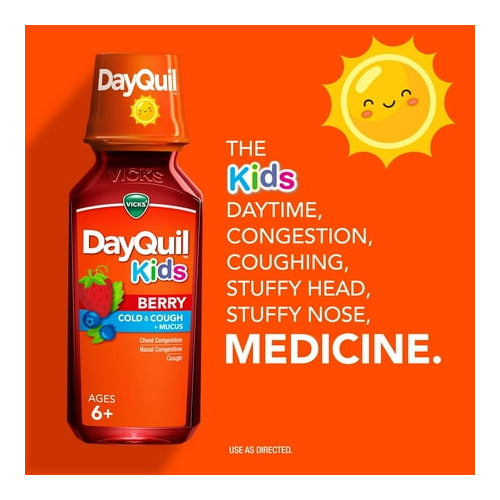When your child is struggling with a cold and cough, you need a solution that works quickly. Vicks DayQuil Kids Cold & Cough Liquid is specifically formulated to provide effective, fast symptom relief from nasal congestion, chest congestion, and cough during the day. Safe for children aged 6 years and older, this trusted medicine helps alleviate their discomfort so they can feel better and get back to being kids. Parents have relied on Vicks for over 125 years for quality cold and cough relief. Make a smart choice for your child's well-being. 😊