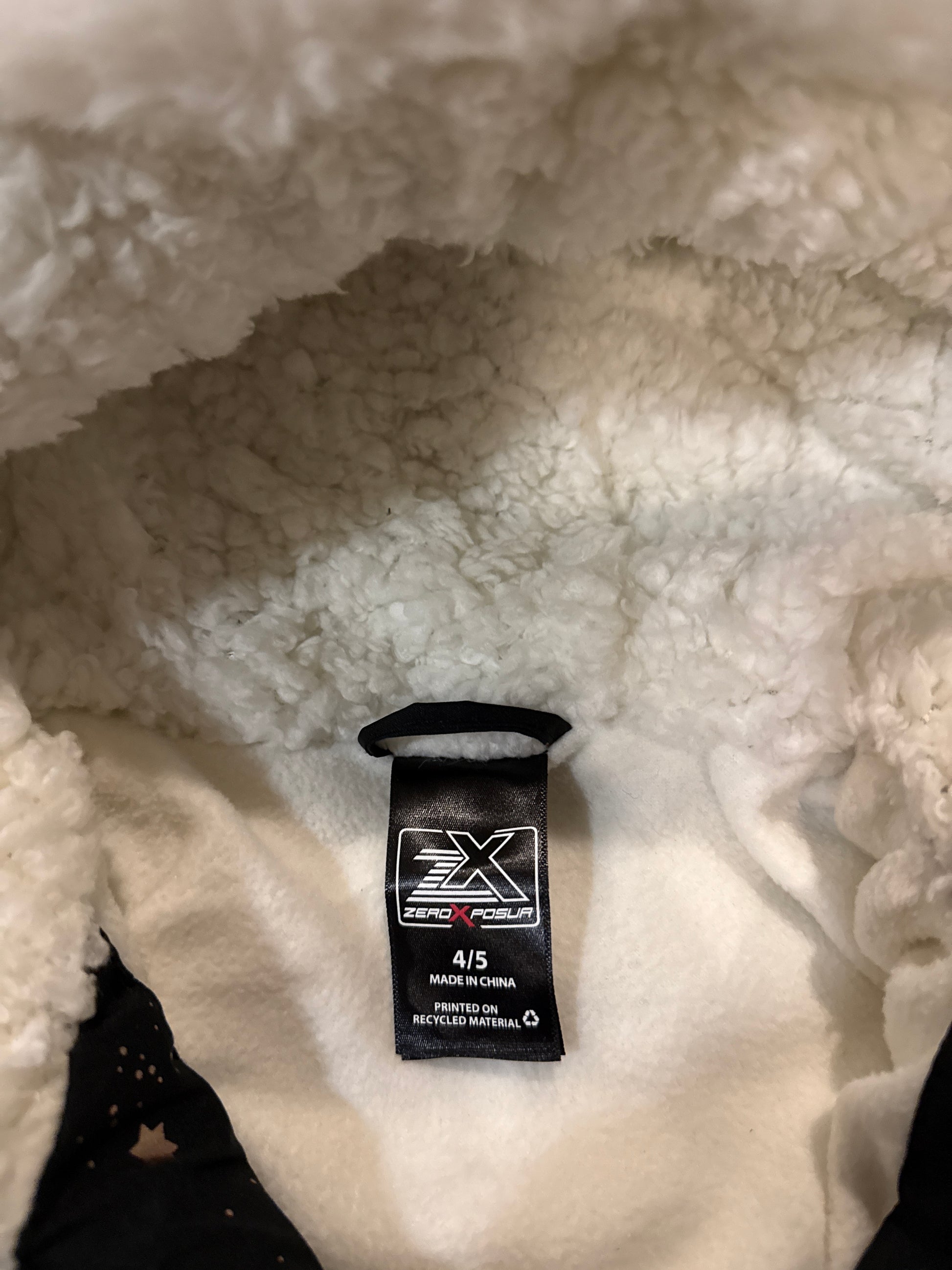 ZeroXposur Girls Puffer Jacket Black Gold Foil Stars Faux Fur Hood NWOT Size 4/5