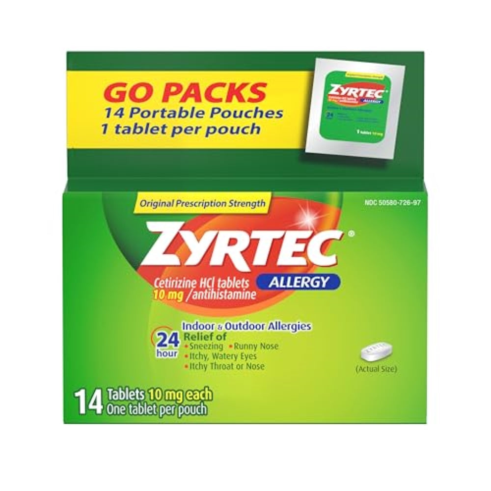 Don't let allergies control your day. Stay comfortable, stay productive with Zyrtec's reliable 24-hour relief. Grab your pack now and breathe easy! 🌈